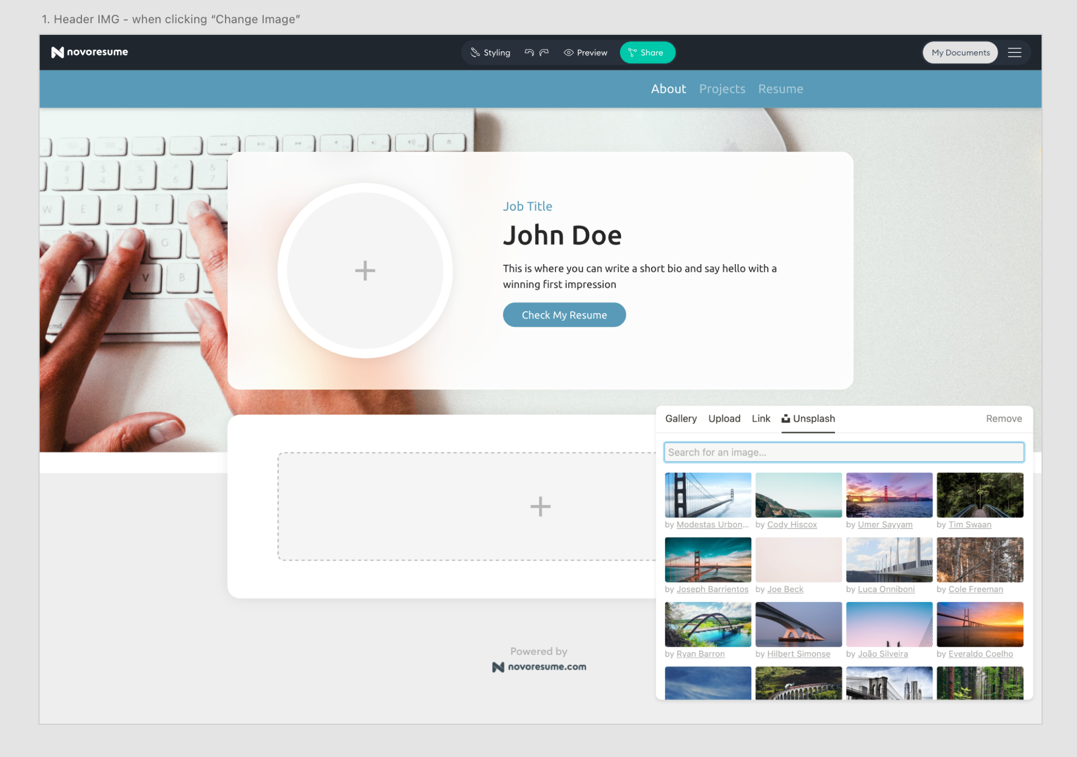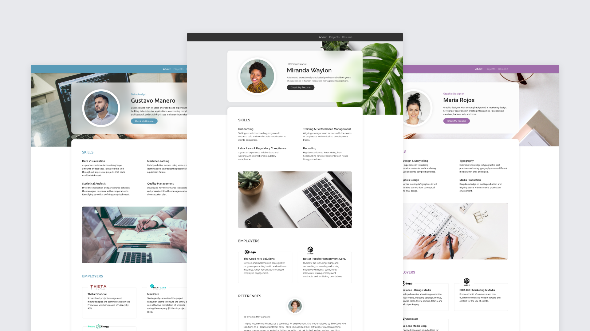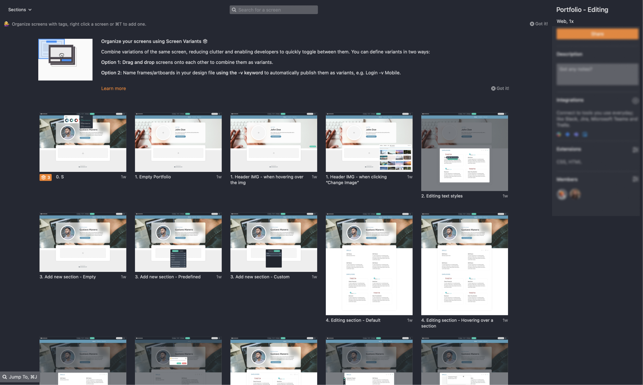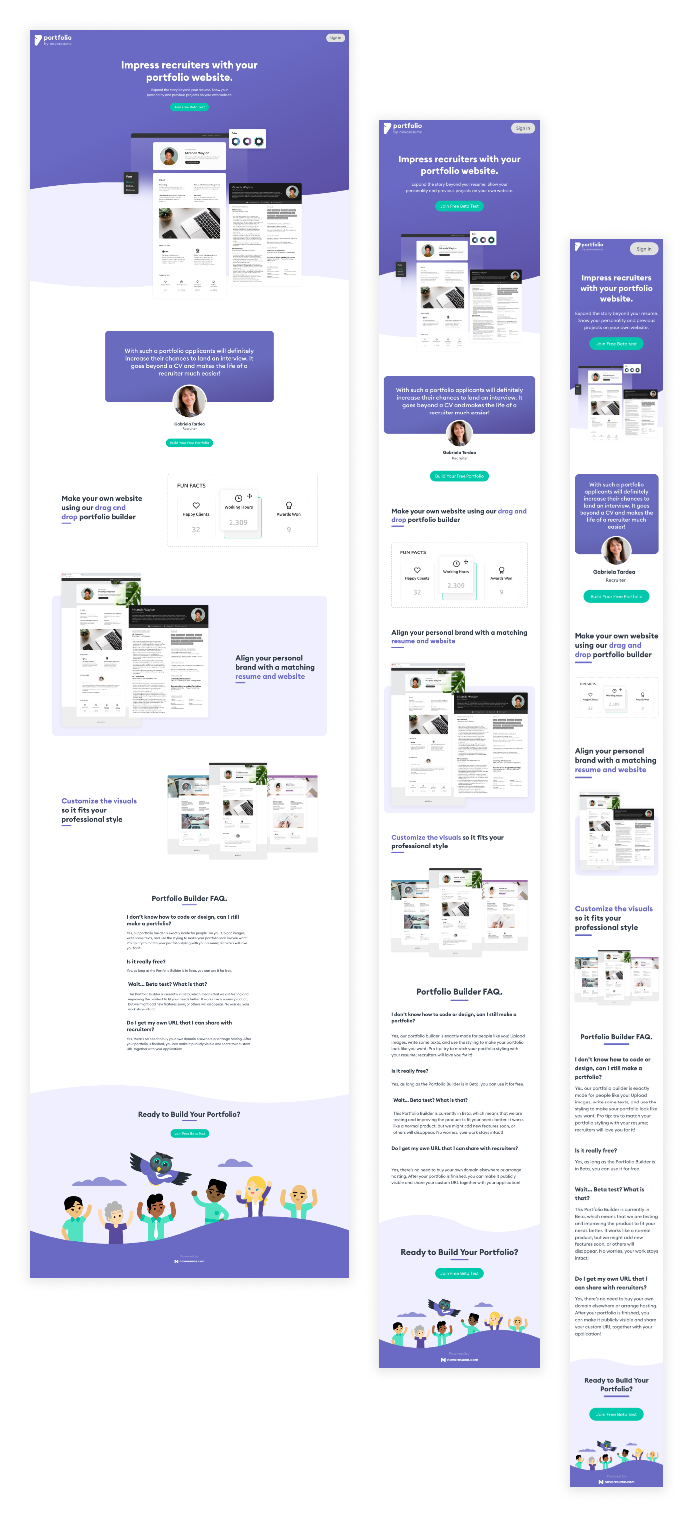 I’ve designed several portfolios that could be the outcome of what people can make with our builder. This was also done to have good visuals that make people enthusiastic about joining our MVP-Beta Test because we would need to recruit participants soon.
